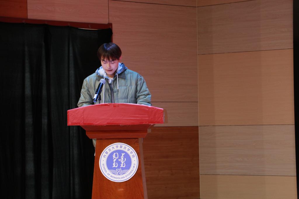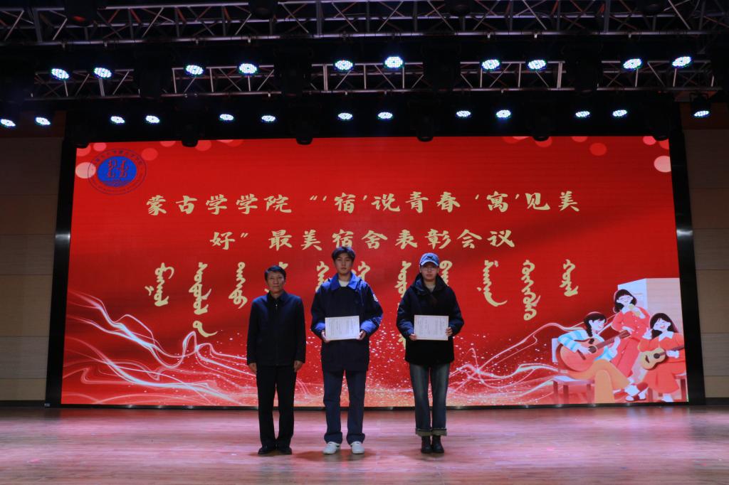 学院专职辅导员倪晨阳宣读《关于表彰蒙古学学院“‘宿’说青春‘寓’见美好”最美宿舍获得者的决定》,经学生宿舍申报、学院组织评选,蒙古学学院1号楼106等25个学生宿舍受到最美宿舍表彰。