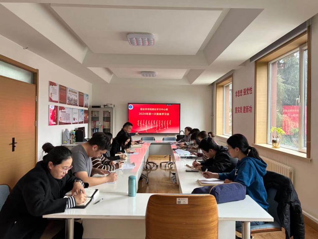 2024年2月28日下午,蒙古学学院党委在蒙学楼二楼小会议室举行理论学习中心组2024年第一次集体学习。学院党委书记八格主持学习。学院领导班子成员、党支部书记、系所(教学部)负责人、行政科室负责人参加学习。